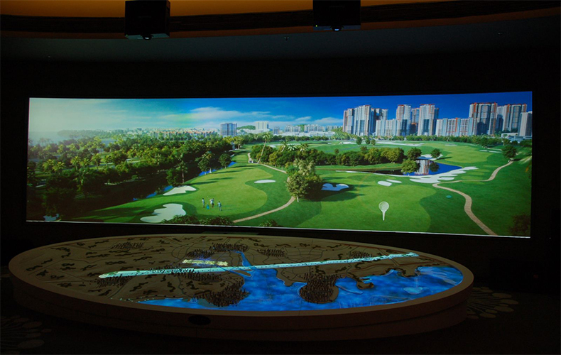 能展現(xiàn)城市中的建筑物、軌道交通、花草樹木、四季變化以及未來(lái)發(fā)展等信息,沙盤制作技術(shù)人員利用計(jì)算機(jī)中的沙盤制作軟件結(jié)合沙盤技術(shù)制作而成的內(nèi)容,通過(guò)投影投射到屏幕上展現(xiàn)。