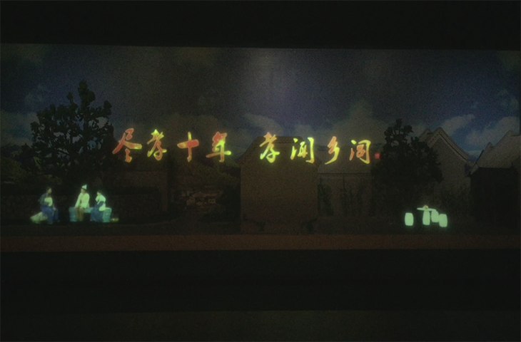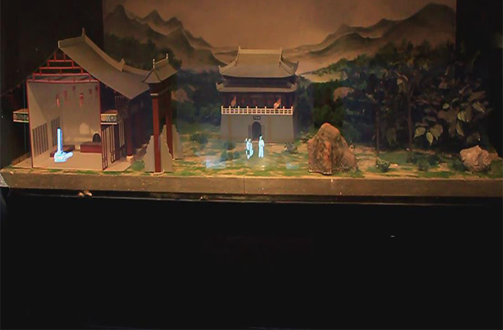 3、 多面化:幻影成像技術(shù)涵蓋是多面化的,例如《走進漢陽陵展廳》,在整個幻影成像中不僅加入了主持人的形象,還將一面屏風做為播放媒介播放相關(guān)的歷史影片,從現(xiàn)代到古代、從傳統(tǒng)到未來,使得參觀者目不暇接、感同身受;