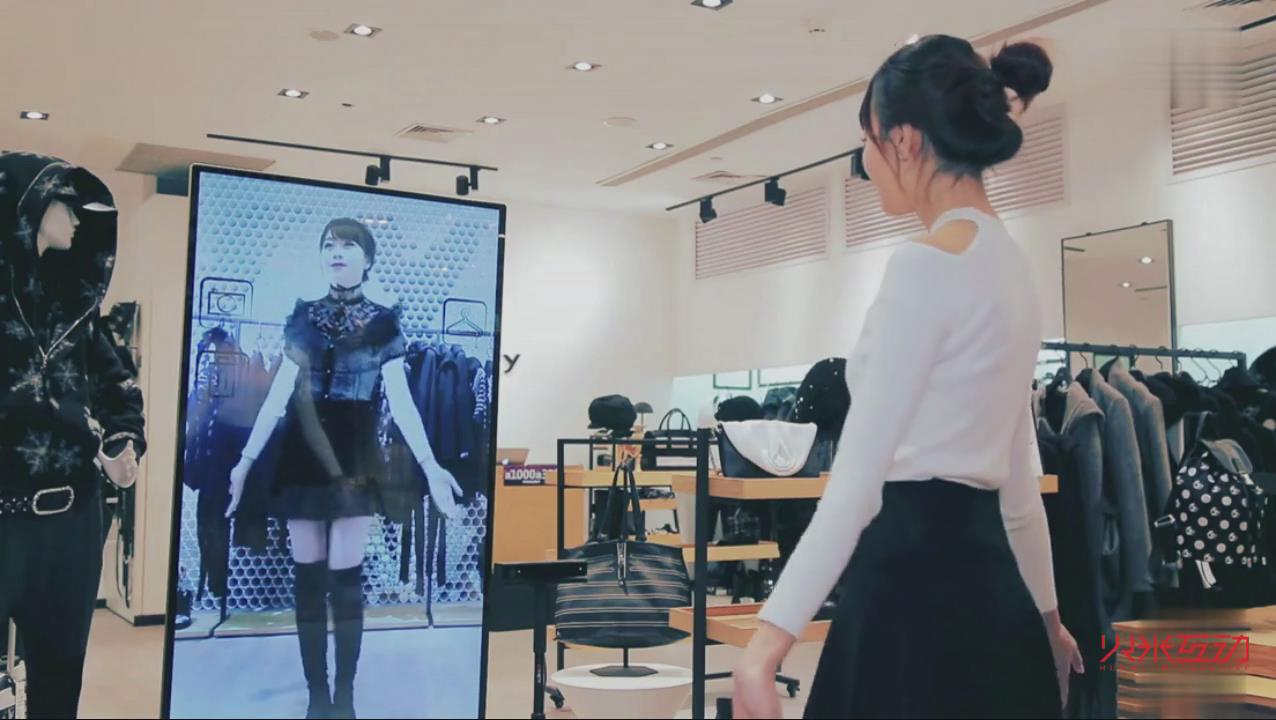 虛擬試衣鏡將人體感應(yīng)技術(shù)、網(wǎng)絡(luò)與數(shù)字顯示技術(shù)完美結(jié)合,顧客站在大屏幕前,不需要觸摸屏幕只需通過肢體動作隔空控制,就可以實現(xiàn)與試衣魔鏡的互動。