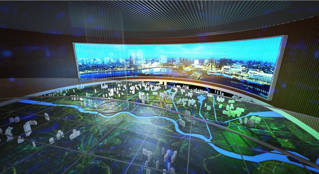 能展現(xiàn)城市中的建筑物、軌道交通、花草樹木、四季變化以及未來發(fā)展等信息,沙盤制作技術(shù)人員利用計算機中的沙盤制作軟件結(jié)合沙盤技術(shù)制作而成的內(nèi)容,通過投影投射到屏幕上展現(xiàn)。